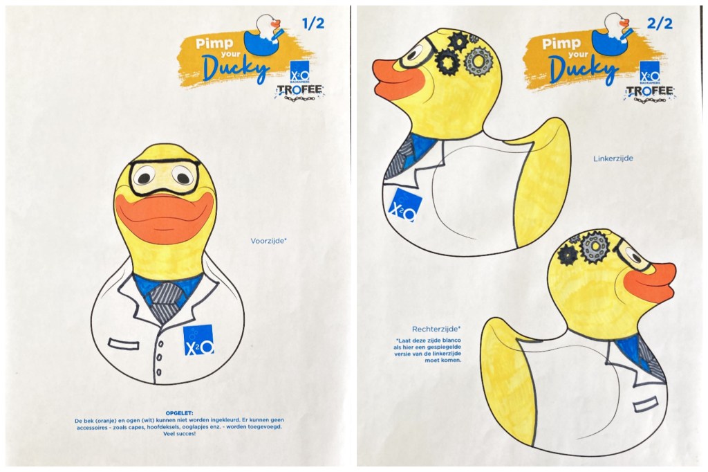 Ik wilde heel graag een wetenschaps-eendje ontwerpen voor de cross, omdat ik in het dagelijks leven docent ben in het vak scheikunde, maar daarnaast verliefd ben op de cross. Al sinds X2O-badkamers het badeendje als trofee uitreikt, koester ik de hoop er ooit eentje (eendje!) in mijn woonkamer te mogen zetten. De kans dat ik deze trofee al crossend in de wacht ga slepen is, hoewel ik zelf graag cross-wedstrijdjes rijd, bijzonder minimaal (nogal nul) dus deze mogelijkheid via de ontwerp-wedstrijd grijp ik met beide handen aan! Het lijkt mij fantastisch om zo een X2O-badkamers trofee te mogen winnen en als hij dan ook nog in scheikunde-outfit mag zijn is dat helemaal fantastisch!”
