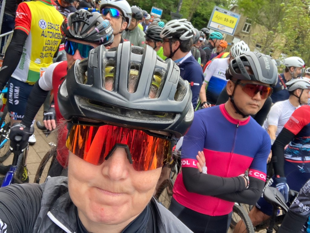 In Aken sta ik duidelijk wat meer ‘aan’. Ik ben gemotiveerd om hier mijn kwalificatie te bevestigen door een UCI-medaille-plek te gaan halen of misschien wel meer. Vorig jaar lag het parcours me, maar ook hier heb ik nu niet kunnen verkennen en hebben de parcoursbouwers het een en ander gewijzigd. Ook de organisatie blijkt wat zaken te hebben omgegooid, omdat ook een Gran Fondo kwalificatiewedstrijd op deze zelfde dag is gepland. Het is druk, chaotisch en op allerlei fronten duidelijk dat men zich ietwat heeft verslikt in de impact van deze beide wedstrijden op één dag te willen organiseren. Het begint al op het startterrein, waar volslagen onduidelijk is waar wij vrouwen 50+ moeten gaan staan. Als ik geen wedstrijdspanning had gehad, hadden we misschien kunnen lachen om het feit dat we met vrijwel de gehele damesclub tot twee keer toe gesommeerd worden van startvak te veranderen.