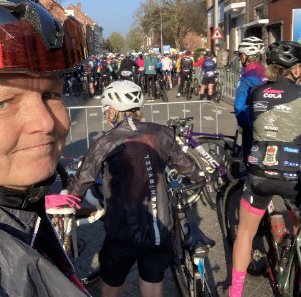“Hoeveelste moet je worden?” vraagt Karst, doelend op een eventuele kwalificatie voor EK en WK later in 2026. Ik bekijk de startlijst van Turnhout Gravel, een UCI wedstrijd in de gravel world series. Er staan 25 namen op de lijst vrouwen 50-54, wat betekent dat als echt iedereen komt opdagen 7e nog net genoeg is. “Vijfde zou heel mooi zijn,” antwoord ik, de namen van de lijst in me opnemend, terwijl het achteraf cruciale sprintje van vorig jaar zich in mijn herinnering afspeelt. Het is mijn eerste race van het seizoen. Zoals ik van mezelf gewend ben, is er weer een heleboel getwijfel. Ik ben eigenlijk vooral bezig met me voor te bereiden op een mooie week gravelen in Girona eind april. Die week wil ik afronden met de 200 km wedstrijd van de The Traka. Het WK van de UCI in oktober 2026 is nog heel ver weg. Letterlijk ook, want in Australië. Ik zie nog niet echt voor me hoe ik dat ooit ga combineren met een baan in het onderwijs, maar het EK is eind augustus in Houffalize in België. Daar wil ik eigenlijk wel heel graag gekwalificeerd aan de start verschijnen.