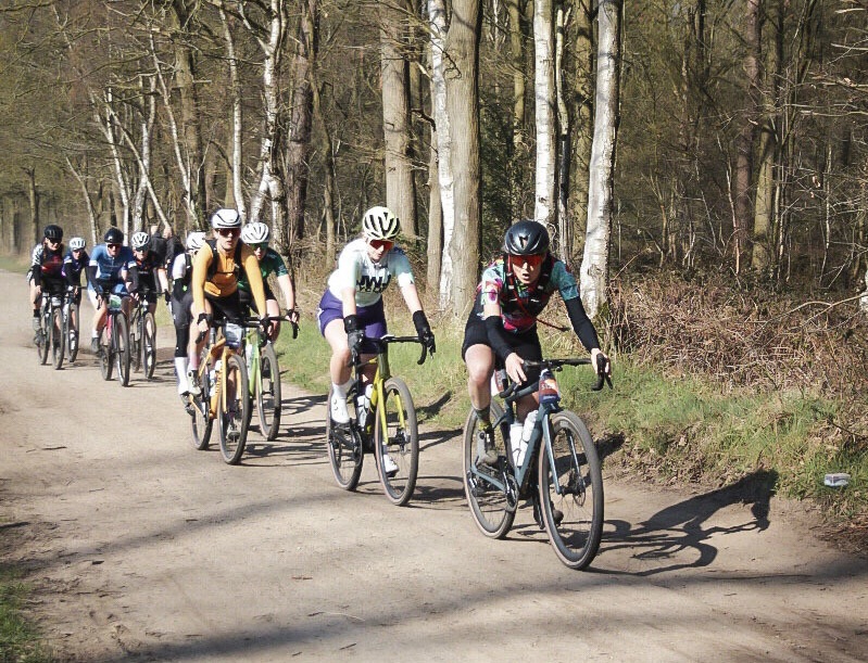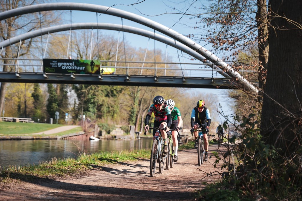 De organisatie heeft de startvakken wat anders ingedeeld dan afgelopen jaar. Eerst starten alle mannen, ongeacht de afstand, daarna alle vrouwen. Het startvak met de diverse vrouwencategorieën ouder dan 50 is het allerlaatste en verrassend dicht bij de parkeergarage. Bijkletsen met andere deelneemsters, zenuwenplasje op een vieze dixie en proberen warm te blijven in een frisse ochtendzon. En dan om 9:27 is het onze beurt: racen! Het mechanisme werkt nog steeds. Eenmaal gestart, schakelt mijn hoofd direct over op een ander kanaal. Startopdracht: vooraan proberen te blijven, maar niet mezelf leegsleuren op kop. Zien en reageren; wielen, gaten, bochten. Wie is een fijne piloot om te volgen? Op de eerste lange gravelstrook is de toplaag zodanig los, dat het aanvoelt alsof mijn wielen niet goed in mijn frame vastzitten. Gewoon gaan Inge, tractie houden, jij kunt dit. Al snel stuiten we op achterblijvers van startgroepen voor ons, maar vrijwel altijd kunnen we er met de kop van onze wedstrijd vrij snel voorbij. Onze groep wordt langzaam steeds meer een groepje, omdat er dames lossen. Ik maak er een missie van om steeds bij de eerste zes, zeven te blijven. En dat lukt!
